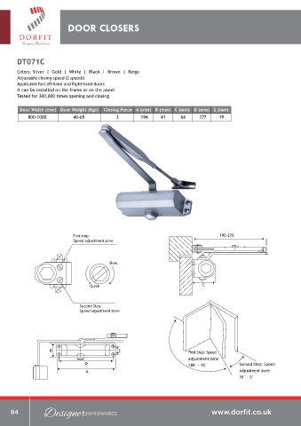 Door Width (mm) Door Weight (Kgs) Closing Force A (mm) B (mm) C (mm) D (mm) E (mm) Door Width (mm) Door Weight (Kgs) Closing Force A (mm) B (mm) C (mm) D (mm) E (mm)