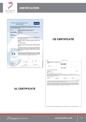 To support the high quality and first-class engineering that has gone into the Dorfit product range, we Certificate of Constancy of Performance